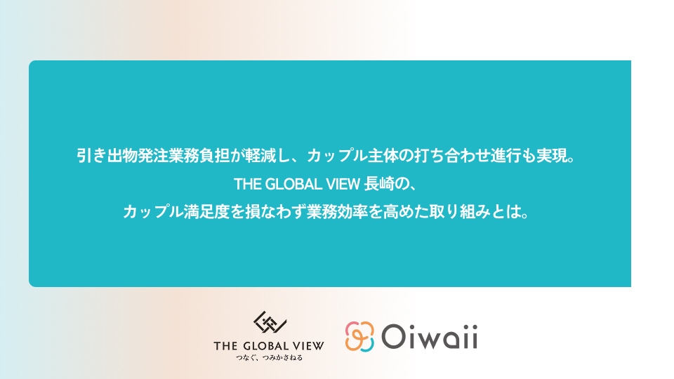 引き出物発注業務負担が軽減し、カップル主体の打ち合わせ進行も実現。THE GLOBAL VIEW 長崎の、カップル満足度を損なわず業務効率を高めた取り組みとは。