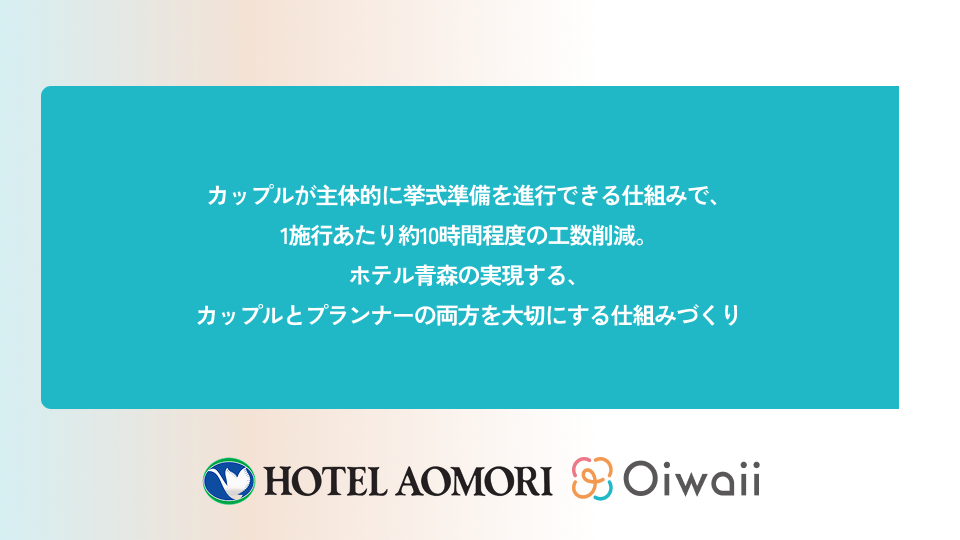 カップルが主体的に挙式準備を進行できる仕組みで、1施行あたり約10時間程度の工数削減。ホテル青森の実現する、カップルとプランナーの両方を大切にする仕組みづくり